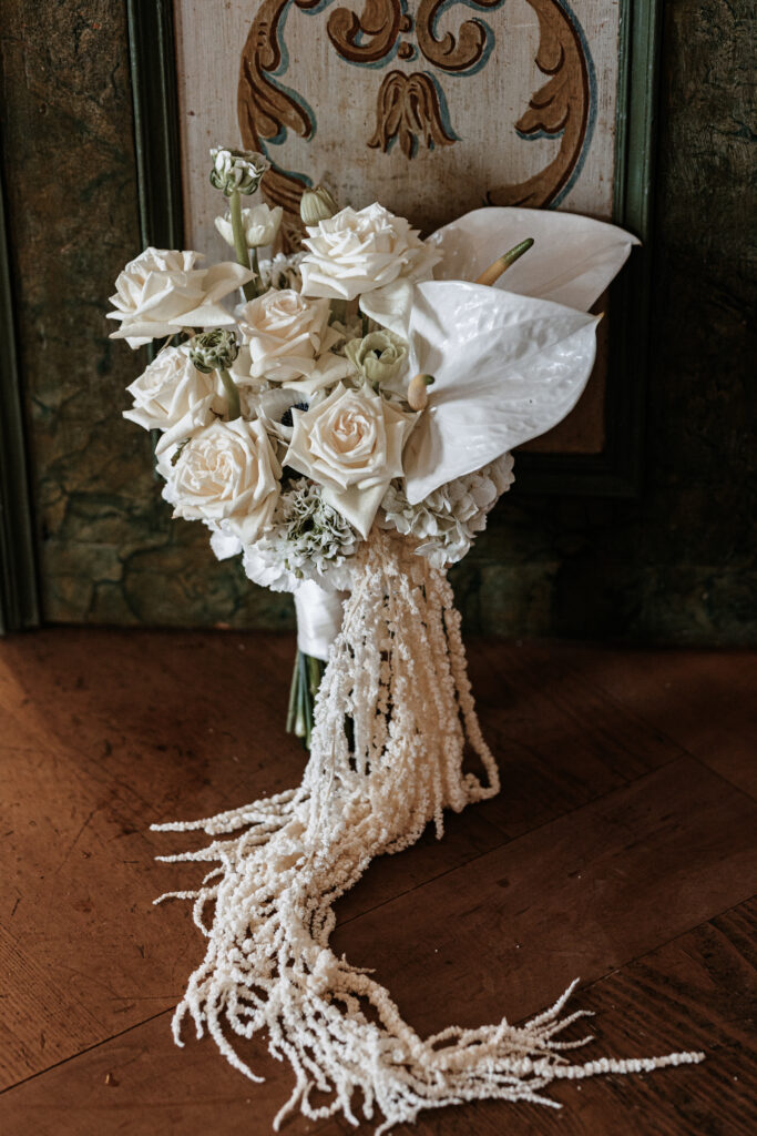 Die Zeremonie ist der emotionale Höhepunkt eures Tages, und Blumen verstärken diese Stimmung. Banksträusse mit Band kosten etwa CHF 10 pro Stück und markieren euren Weg zum Traualtar. Sie geben der Zeremonie einen festlichen Rahmen. Ob in der Kirche, im Festsaal einer Location oder draussen – die Blumen sollten den Fokus auf euch als Paar lenken.